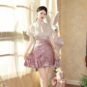 原创鹤鹿同春汉服女中国风改良汉元素新中式短款薄款马面裙8934