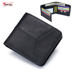真皮rfid防盗刷男士短款钱包头层牛皮多卡位钱夹二三折经典钱包