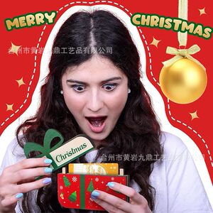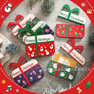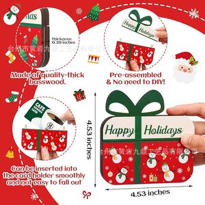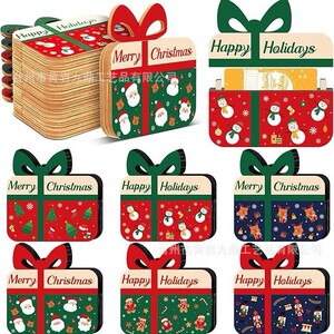 亚马逊6件圣诞礼品卡夹礼盒形状木制钱夹 钱和购物卡套冬季装饰品
