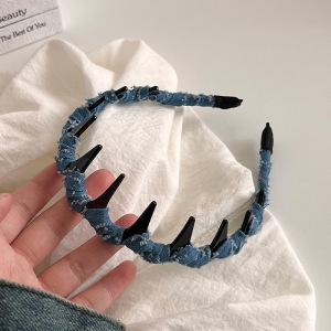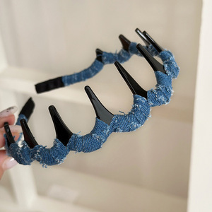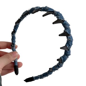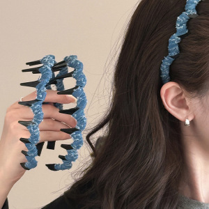 蓝色牛仔带齿防滑发箍女夏天2025新款高级感洋气头箍梳头发卡发饰