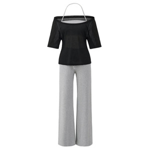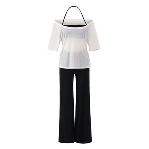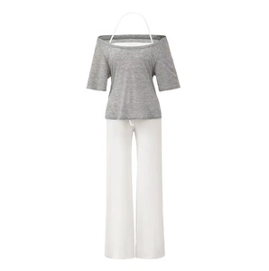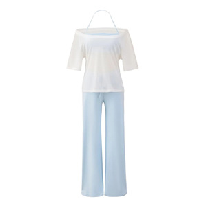 25夏新款女美式辣妹风纯色中袖防晒罩衫+内搭挂脖背心+休闲裤套装