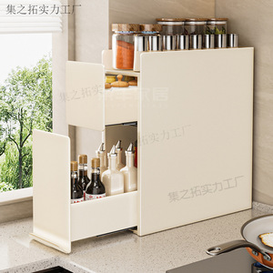厨房置物架多功能抽拉式极窄边调料品盐调味罐收纳盒台面调料架子