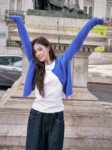 现货S*P2025秋季新品圆领羊毛开衫简约休闲外搭短款针织衫女