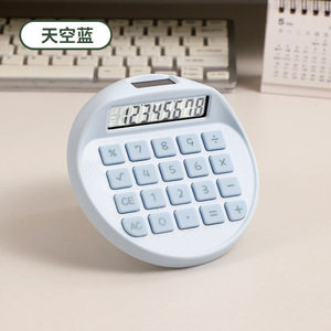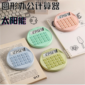 迷你计算器圆形可爱太阳能便携式计算机双电源高中生考试用计算器