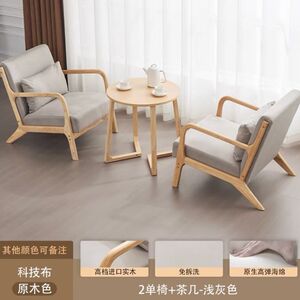 原木色2椅+茶几-米灰【防水耐磨皮】