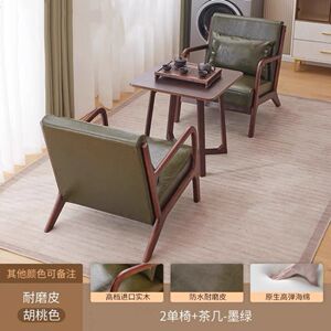 胡桃色2椅+茶几-墨绿【防水耐磨皮】