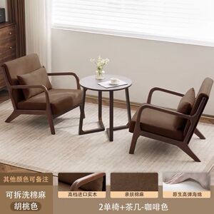 胡桃色2椅+茶几-咖啡【可拆洗面料】