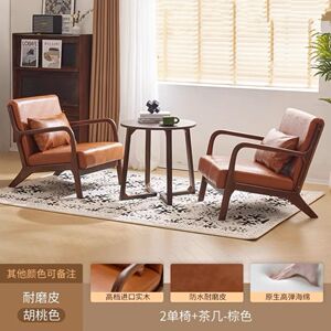 胡桃色2椅+茶几-棕色【防水耐磨皮】