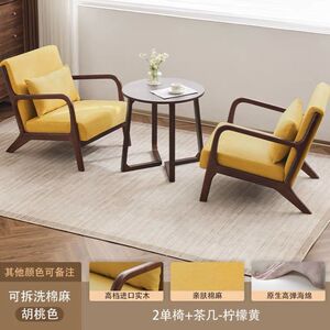 胡桃色2椅+茶几-柠黄【可拆洗面料】