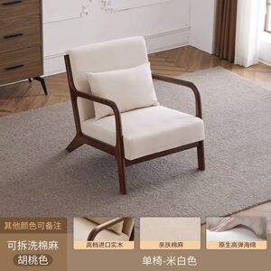 胡桃色2椅+茶几-米白【可拆洗面料】