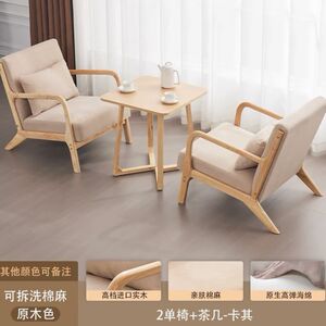 胡桃色2椅+茶几-卡其【可拆洗面料】