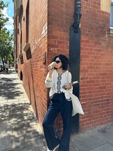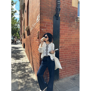 现货ONIVINTAGE早秋上新!80%棉极简撞色重工绣花衬衫OMY256S8741