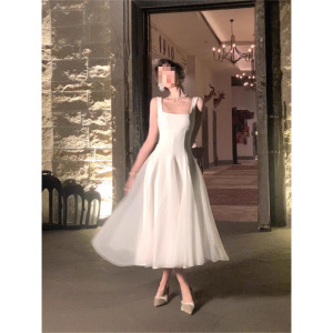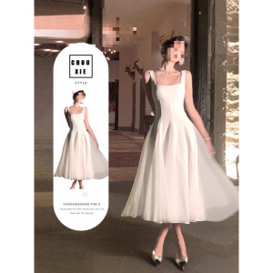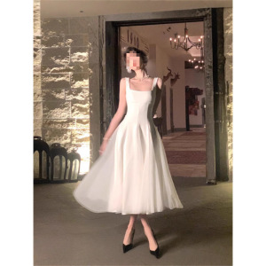 夏季新款法式茶歇高端精致超好看气质白色吊带连衣裙公主长裙子女