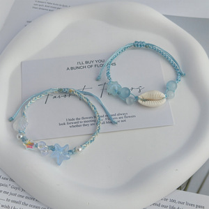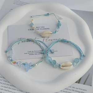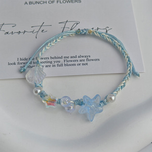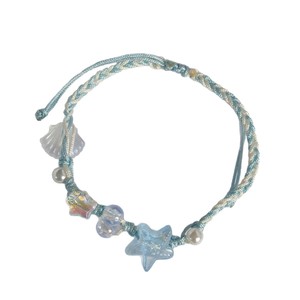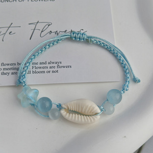 新款猫眼石贝壳手链多巴胺编织手链夏日海边度假风贝壳吊坠手绳
