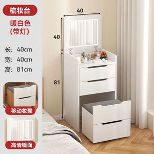 40CM暖白+带灯翻盖镜子+隐藏妆凳(高款)