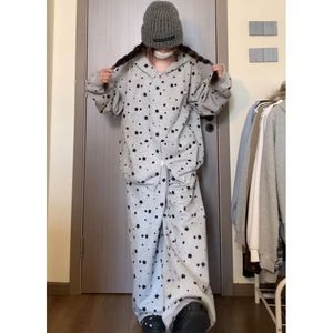 韩系慵懒风纯欲星星印花兔耳朵连帽睡衣女秋款长袖长裤家居服套装