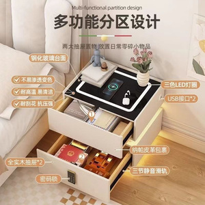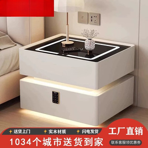 智能床头柜轻奢感悬浮多功能无线充电简约现代收纳岩板实木床