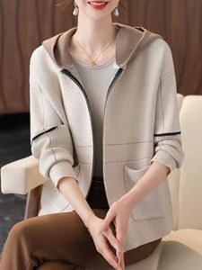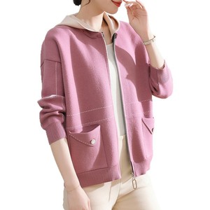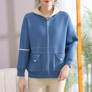 洋气妈妈秋装外套针织短款连帽夹克上衣2025新款中老年女秋冬开衫