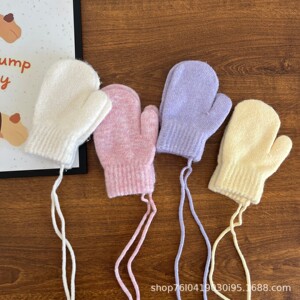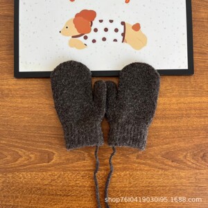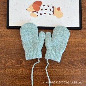 25年羊毛混纺挂脖小童手套