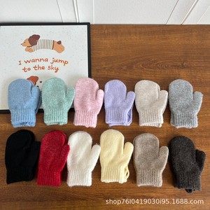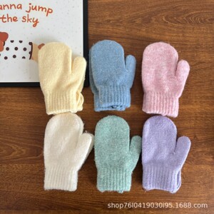 糖果色儿童针织手套纯色百搭男女童冬季保暖挂脖连指包套宝宝手套