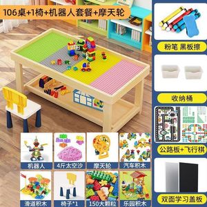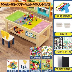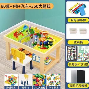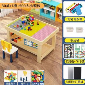 实木积木桌子多功能大尺寸儿童拼装男孩女孩宝宝大颗粒玩具桌直发