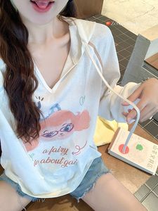 曾小咸 韩系穿搭连帽薄款防晒长袖罩衫女夏宽松慵懒空调衫t恤上衣