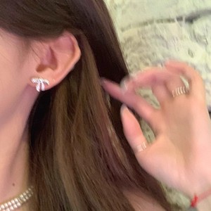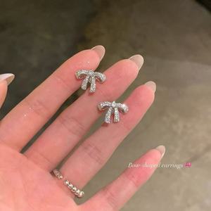 韩系超闪满钻蝴蝶结耳钉女轻奢小众高级感气质耳环独特绝美耳饰