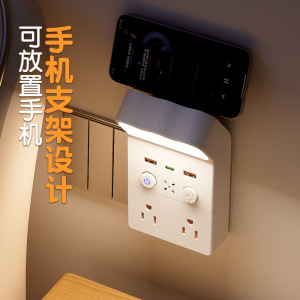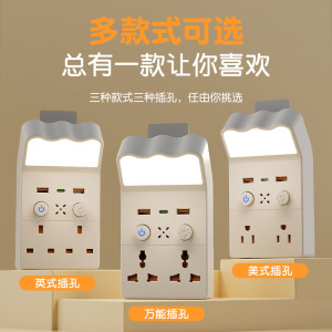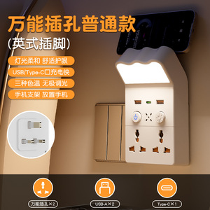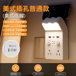 英规美规通用孔跨境床头小夜灯带插座式照明灯一体插电壁灯睡眠灯