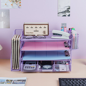 跨境办公桌收纳4 层桌面文件整理器紫色学生办公桌面收纳文具收纳