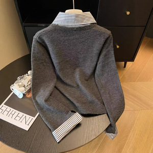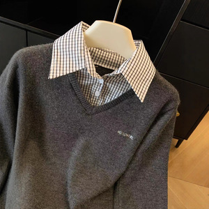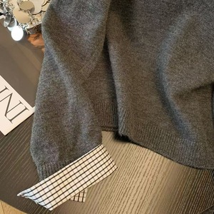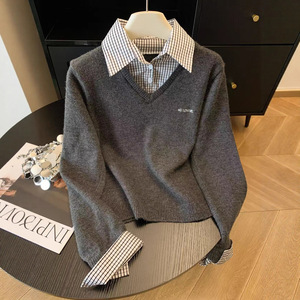 广州十三行高货爆款~衬衫领秋冬套头针织衫复古宽松休闲上衣女ins
