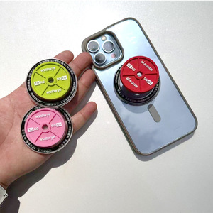 健身房礼品PVC手机支架 举重杠铃片气囊防摔底座 健身教练小礼品