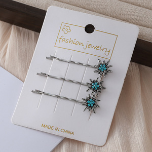 跨境精致时尚雪绒花镶钻发夹一字夹简约轻奢发饰气质设计饰品配件