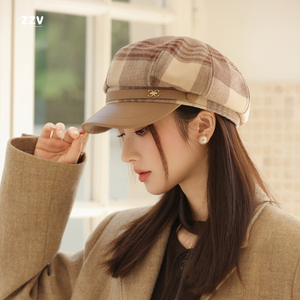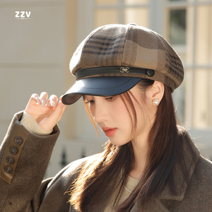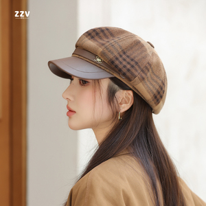八角帽子女春秋季夏天鸭舌出游遮阳防晒帽英伦复古薄款透气贝雷帽