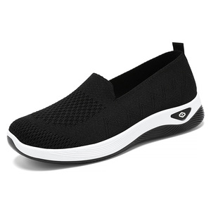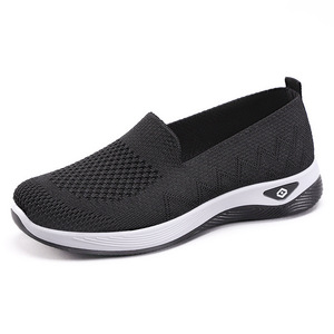 女鞋跨境大码休闲鞋飞织透气鞋子女浅口轻便单鞋一脚蹬软底网面鞋