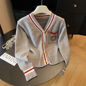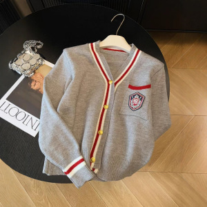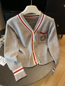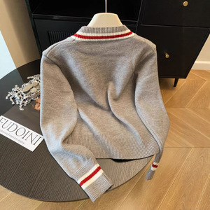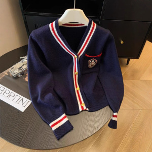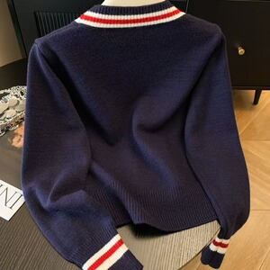 广州十三行高货爆款~美式撞色V领针织衫秋季显瘦百搭开衫毛衣ins