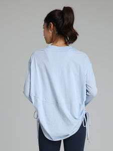 抽绳速干长袖瑜伽服普拉提t恤女透气显瘦跑步健身服宽松运动上衣
