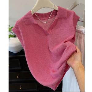 玫粉色短款上衣女夏多巴胺外穿2025新款吊带背心别致无袖恤小衫