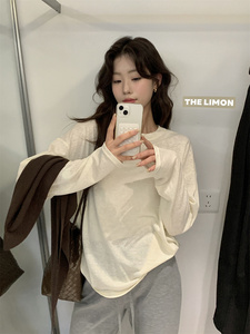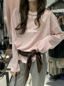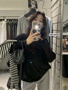 the limon柠檬绿茶韩系简约风宽松显瘦内搭慵懒风外穿圆领长袖T恤