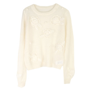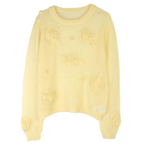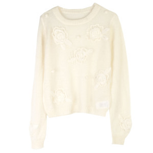 韩版温柔套头毛衣法式重工花朵毛衣宽松显瘦秋冬新款长袖针织上衣