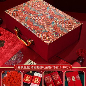 【喜事连连】绒面波浪纹礼金箱-大号(可装12-20W)五件套