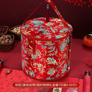 【喜结连理】绣面圆形礼金箱-双层(可装6-50W)四件套