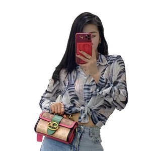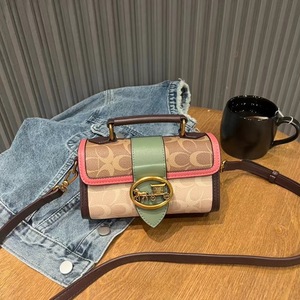 高级感真皮手提小方包女2025新款撞色时尚跨境外贸精致单肩斜挎包