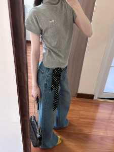 复古水洗阔腿牛仔裤女夏季新款高腰宽松显瘦百搭垂感直筒拖地裤子