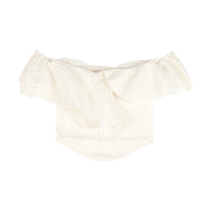 法式复古一字肩短袖衬衫女装夏季荷叶边修身鱼骨白色短款衬衣上衣