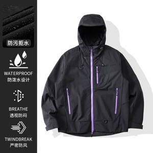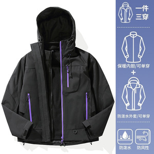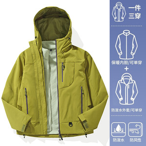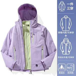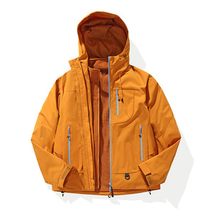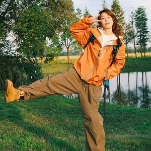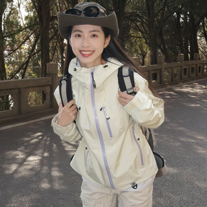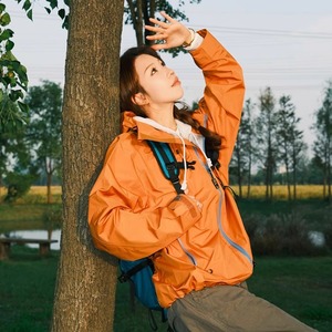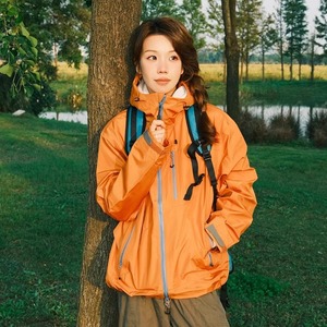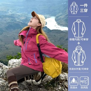 防泼水三合一冲锋衣女士新款小个子户外徒步登山防风橘色春秋外套