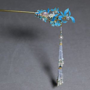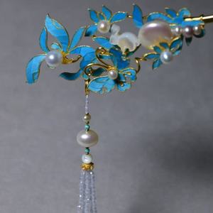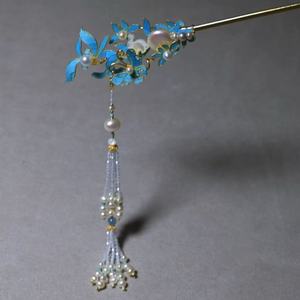 【点翠珠韵】缀蓝羽花影流苏发簪古典雅致东方美学发饰女2025新款