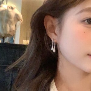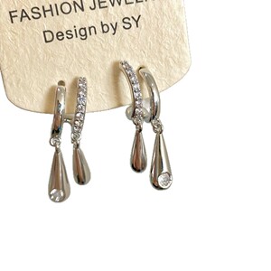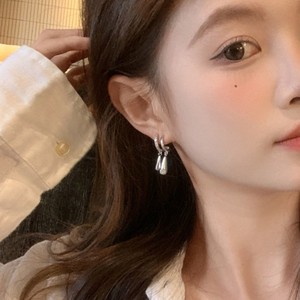 韩系冷淡风银色几何水滴锆石耳环2025年新款小众设计通勤百搭耳饰