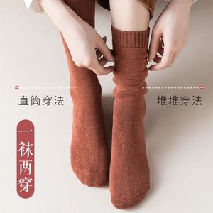 女士高筒袜加厚保暖长筒袜女毛圈小腿袜子纯色毛巾袜秋冬季睡眠袜