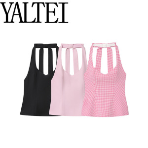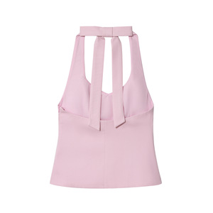 ZAR秋季新款女装欧美风法式设计背部蝴蝶结挂脖领上衣
