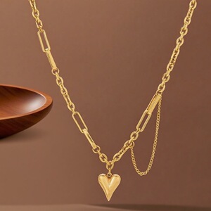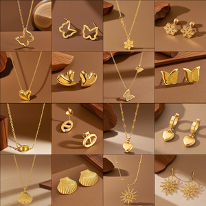 跨境欧美新款不锈钢首饰套装女轻奢高级感爱心耳钉项链锁骨链饰品